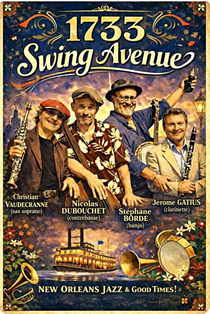 Réunis autour de l’estuaire de la Gironde et du Bassin d’Arcachon, les quatre musiciens composant cet orchestre ont en commun la passion du jazz New Orleans, du Blues et du Swing. Une formule souple et dynamique, dégageant un swing puissant en privilégiant la spontanéité des improvisations collectives sur des thèmes de jazz classique et New Orleans.
