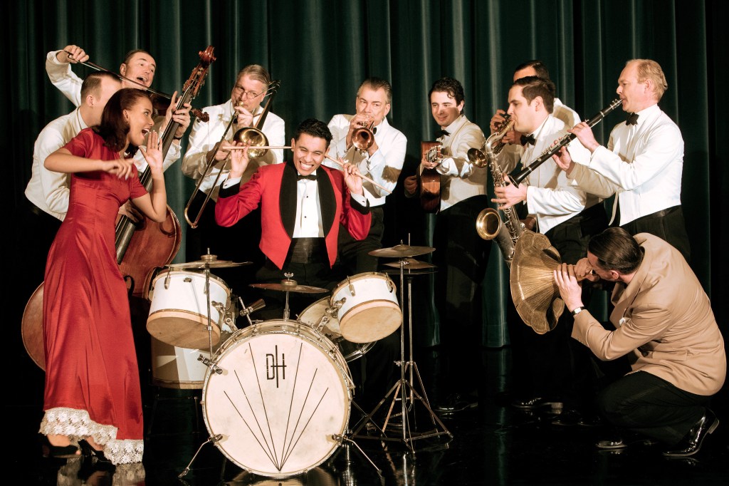 Le pianiste Andrej Hermlin, qui a dédié sa vie à la musique swing de la période des années 1920 à 1940, est le chef d’orchestre de ce qui est probablement le meilleur orchestre swing allemand. Le noyau familial du groupe, outre Andrej au piano, est complété par son fils David Hermlin (batterie, chant et claquettes) et sa fille Rachel Hermlin (chant). Cet orchestre de 9 membres (piano, chant, batterie, clarinette, trompette, trombone, saxophone ténor, guitare, contrebasse) s’est produit dans les meilleures salles de concert du monde : au Rainbow Room de New York, au Teatro Massimo de Palerme, à l’Elbe Philharmonic Hall de Hambourg, à la Philharmonie de Essen, en tournée en Israël, Suisse, etc… Ils font étape à Jazz aux Sources pour le plus grand bonheur des danseurs qui vont pouvoir se régaler sur le son authentique des années 30.